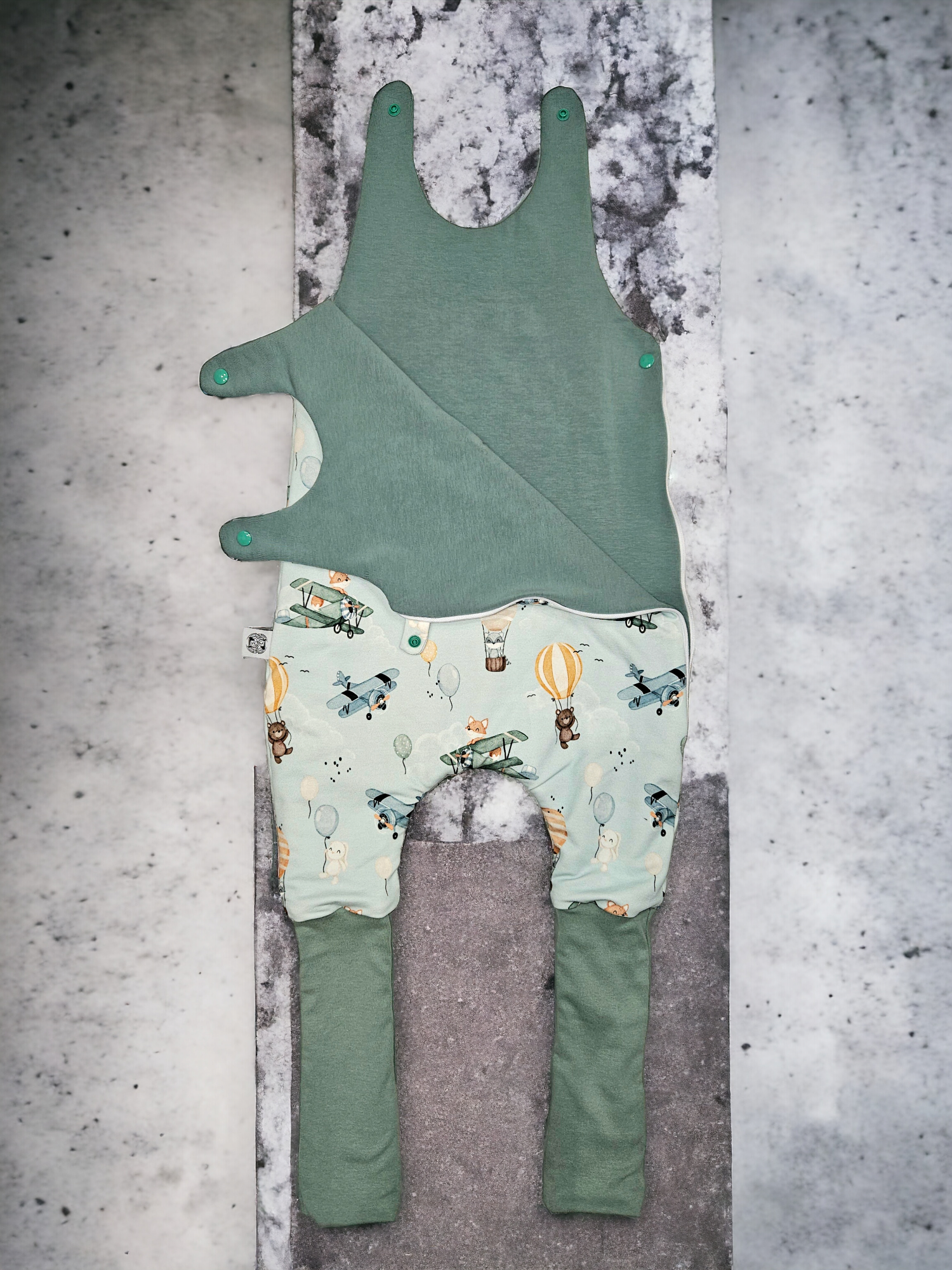 A tipegő hálózsák váll részét műanyag patenttal lehet rögzíteni. Egy oldalon cipzáras és felül patenttal biztosítható a jó záródás. Hosszú kamásli része nap közben felhajtható, alvásnál a gyerkőc lábára lehet húzni a hideg estéken. Ez a vastagság átmeneti időszakra ajánlott, de izzadósabb gyerekeknek téli időszakra is megfelel.