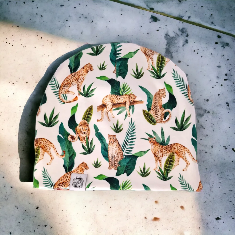 Ez a sapka sima lekerekített fazonú, a fület jól védi. A lezser fazonnál a sapka magassága van megnövelve egy átlag sapkához képest. Ennél fogva a nagy hajtömeggel rendelkező vagy copfba fogott hajú lányok is kényelmes viseletet kapnak. A rövid hajú lányoknál és fiúknál a tarkónál megráncolva laza viseletet kölcsönöz. Két réteg anyagból készül.  Az egyik legkedveltebb fazon, nagyon sok fej formán jól mutat. A hidegebb tavaszi és őszi átmeneti időszakra, illetve egyéntől függően téli használatra is ajánlott. Anyagösszetétele 93% pamut jersey/futter és 7 % elasztán, így szuper rugalmas. Ha egységes de még lazább megjelenést szeretnél, választd a hozzá illő körsálat is.
