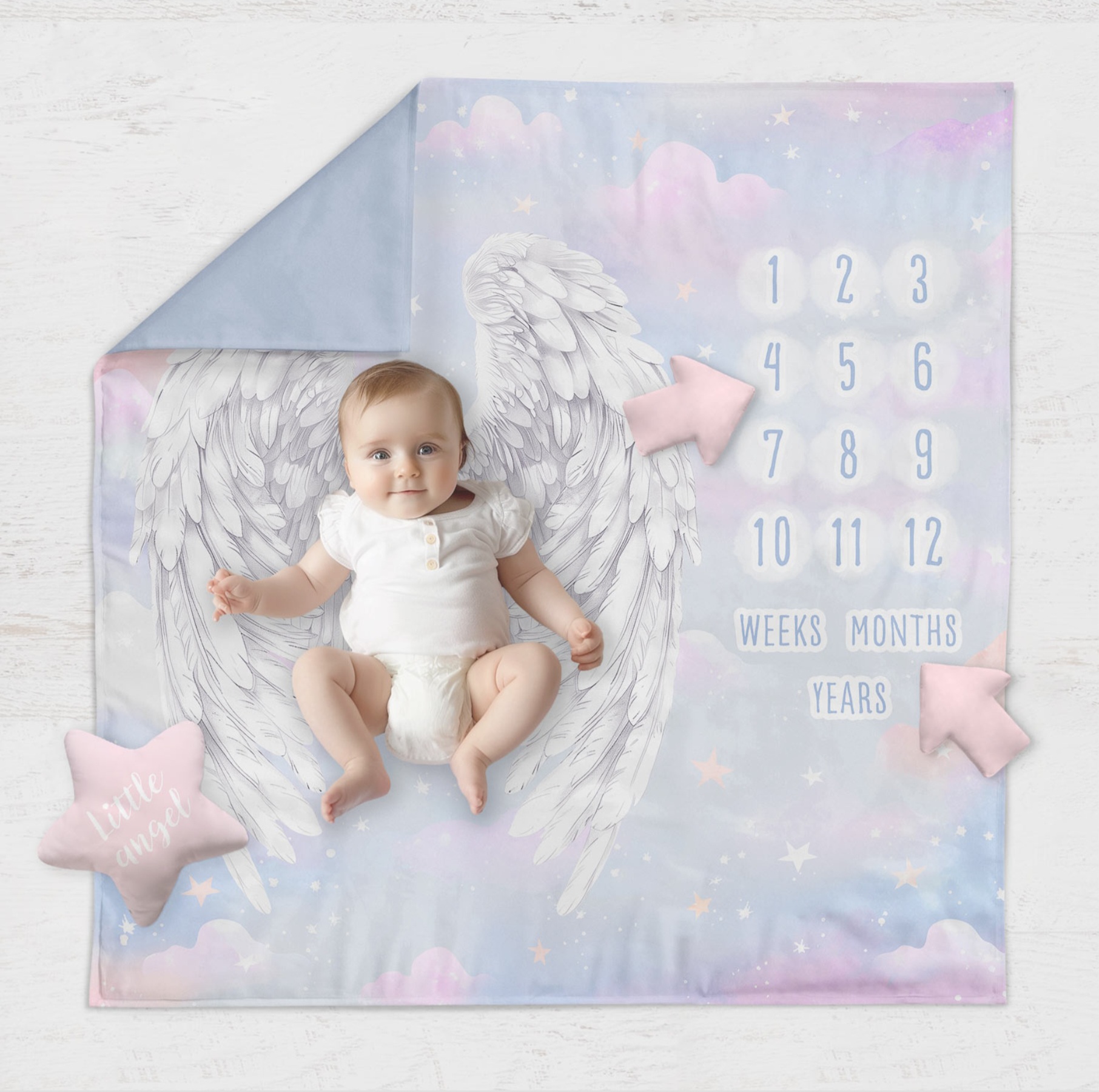 A mérföldkő takaró ideális fényképek készítéséhez és a baba életkorának dokumentálásához, valamint játszószőnyegként, babakocsiba alátétként vagy nyári szőnyegként is használható. A takaró nyilakat is tartalmaz, amelyekkel könnyedén megjelölheted a napokat, heteket és hónapokat, amikor a kisgyermeked fontos életszakaszát betölti. Így könnyedén megörökítheted ezt a pillanatot egy fényképpel ami örök emlék marad neked és az utókornak.
